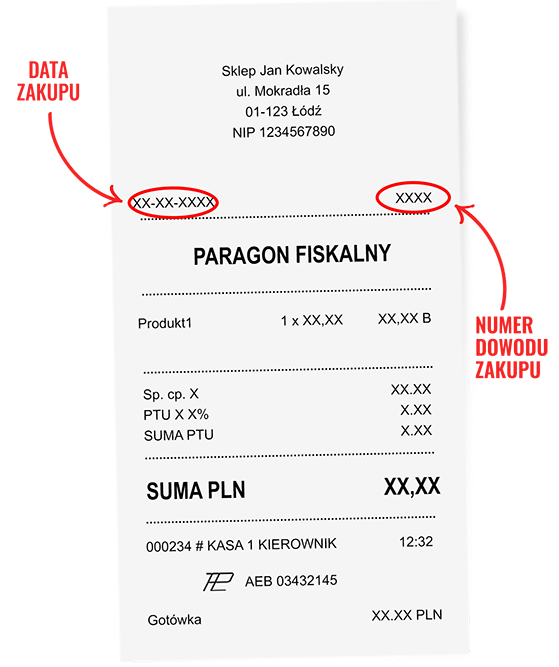 Wpisz adres email i numer dowodu zakupu podane w formularzu zgłoszeniowym